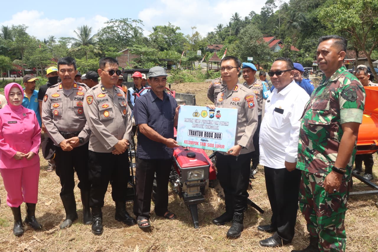 Dalam kesempatan tersebut, turut diserahkan bantuan alat pertanian dari dinas pertanian dan pangan Kabupaten Trenggalek diantaranya, cultivator (mesin pengolah tanah), APPO (Alat Pengolah Pupuk Organik), traktor roda dua dan bantuan sembako serta bibit jagung kepada sejumlah kelompok tani.