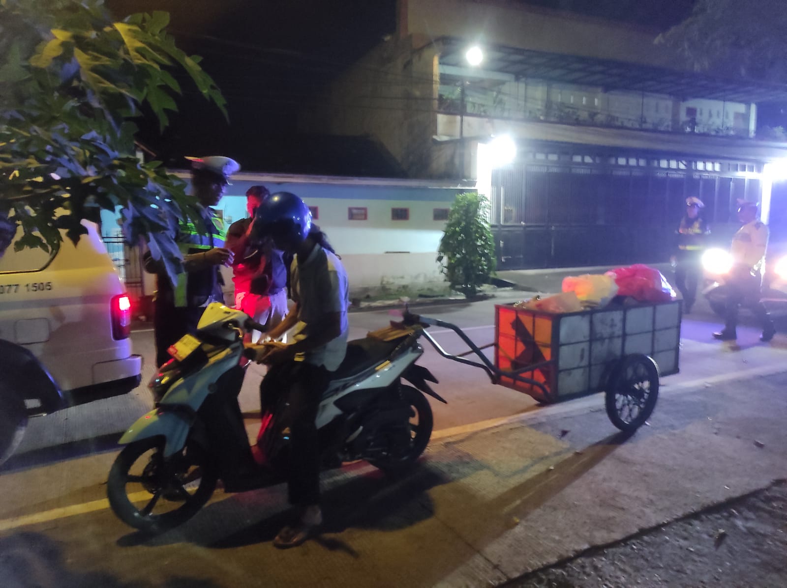 Polres Trenggalek – Sejumlah petugas kepolisian tertangkap kamera sedang berkeliling di beberapa lokasi tepatnya di lingkar kota Trenggalek pada dini hari. Sembari menentang tas plastik ukuran lumayan besar, para petugas ini nampak membagikan nasi kotak kepada beberapa warga yang ditemuinya. Selasa, (24/2).