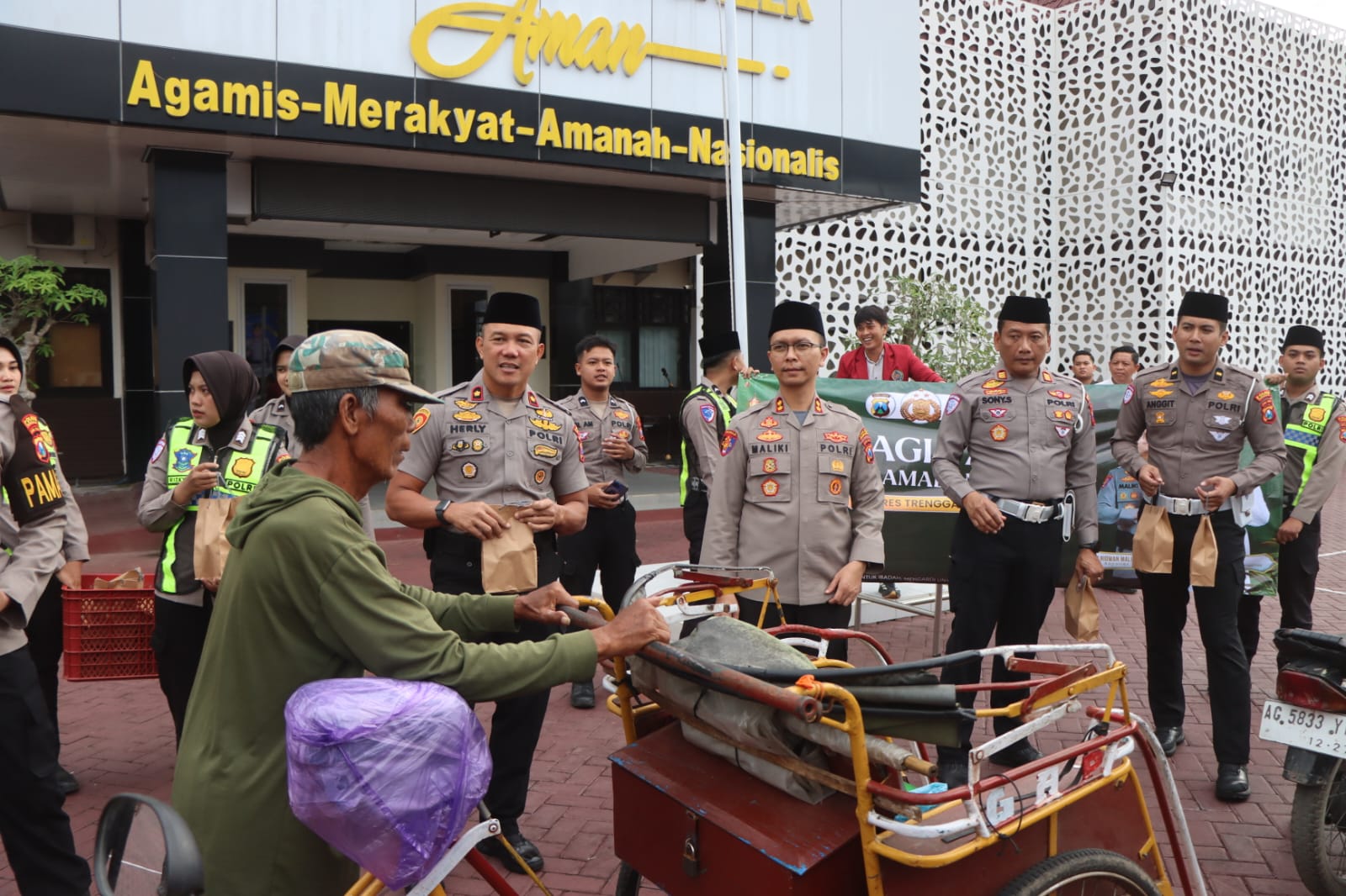 Kapolres Trenggalek AKBP Ridwan Maliki, S.H., S.I.K., M.I.K. yang juga turut hadir menuturkan, kegiatan bagi-bagi takjil ini merupakan rangkaian dari kegiatan cipta kondisi Kamtibmas kondusif selama bulan Ramadan 1447 H.
