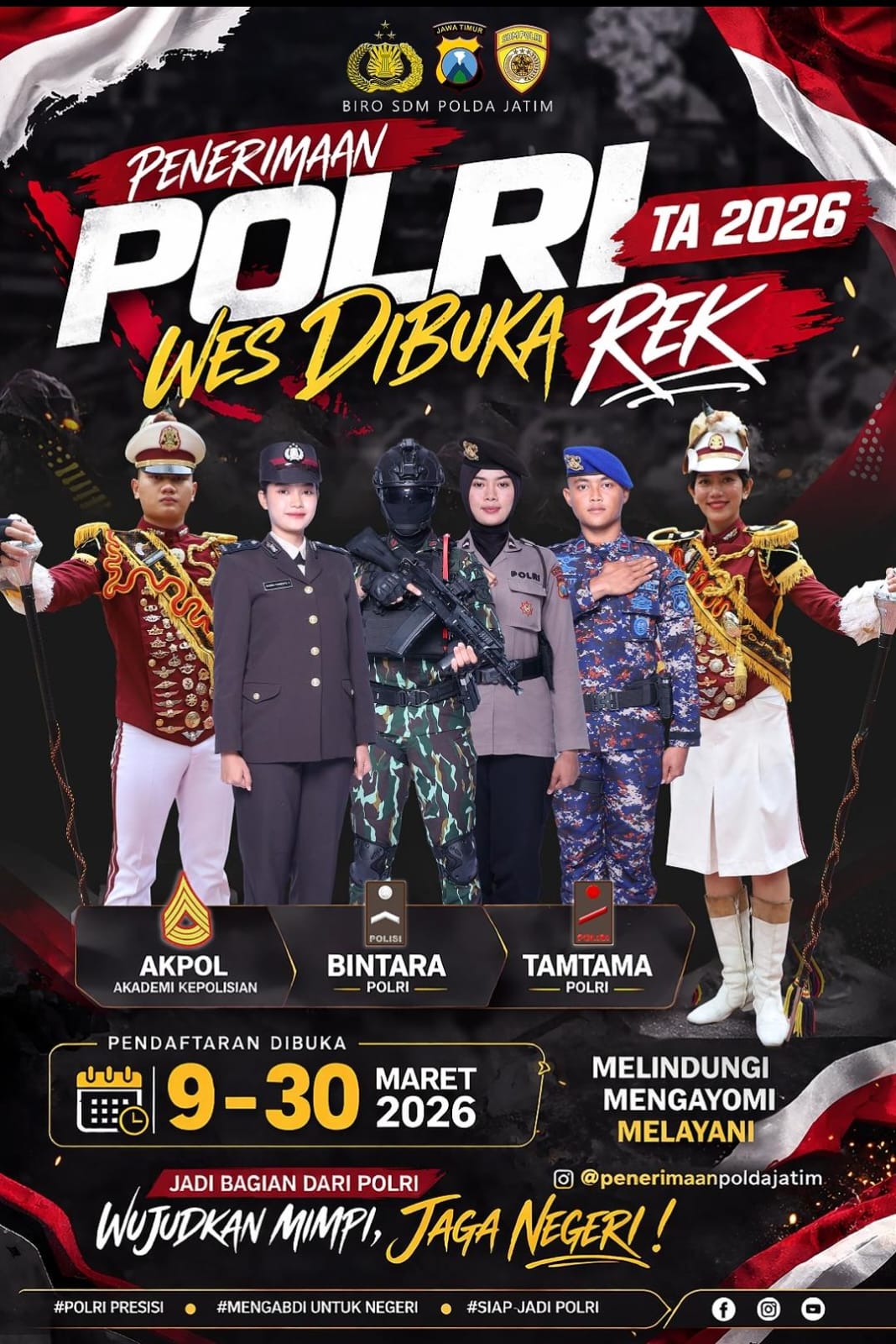 “Pendaftaran, baik Akpol, Bintara maupun Tamtama dibuka mulai tanggal 9 sampai dengan 30 Maret 2026.” Jelasnya.