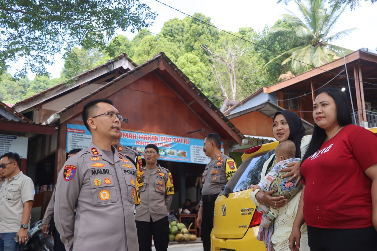 Polres Trenggalek – Kepala Kepolisian Resor Trenggalek AKBP Ridwan Maliki, S.H., S.I.K., M.I.K. memantau langsung pengamanan di berbagai lokasi wisata di pesisir Watulimo. Selasa, (24/3)