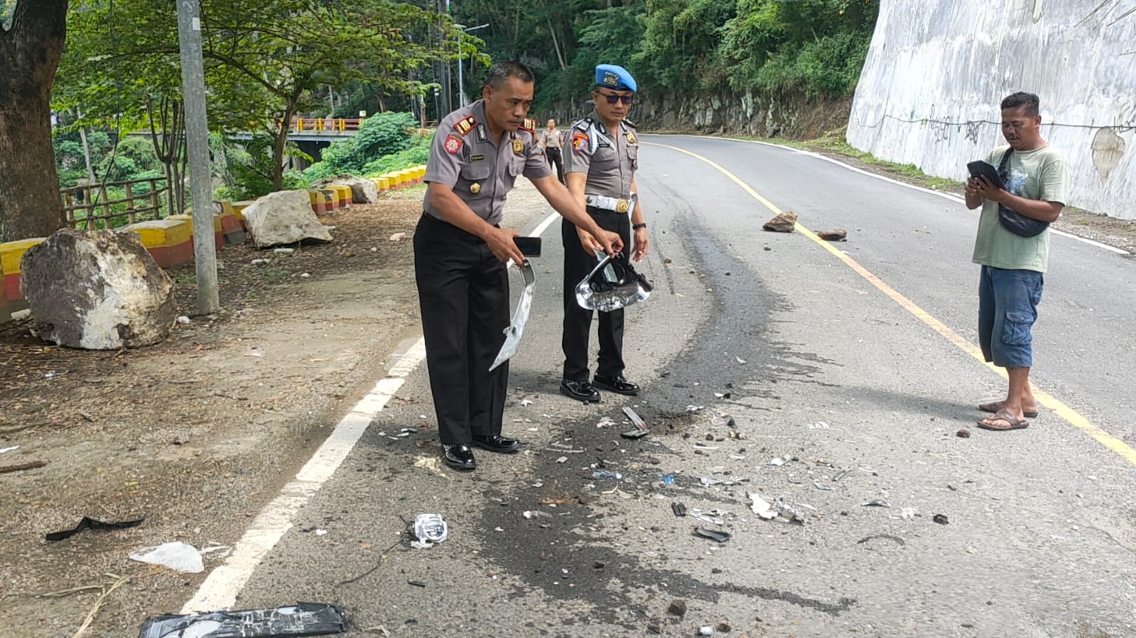 Polres Trenggalek – Sebuah batu berukuran lumayan besar longsor dan jatuh menimpa sebuah kendaraan yang kebetulan melintas di jalan nasional Trenggalek-Ponorogo tepatnya di KM 16 masuk desa Nglinggis Kecamatan Tugu, Kabupaten Trenggalek.. Kamis, (16/4).